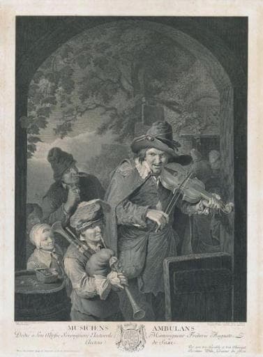 Dietrich a peint Les musiciens ambulants en 1745 à Dresde. En 1764, Will exécute une gravure de même grandeur que la peinture à l'huile