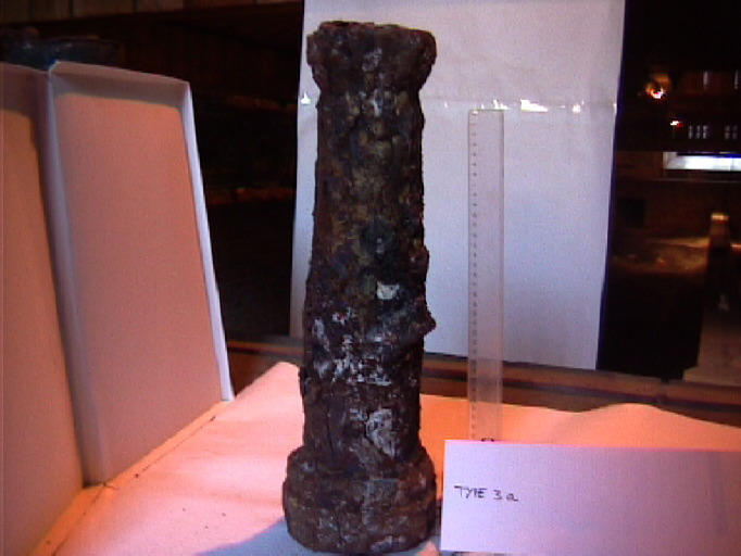 Support de la poêle en sous-oeuvre. Les chandelles étaient disposées régulièrement sous la poêle. Les plus grandes étaient placées devant le foyer, là où le sol s'abaisse.