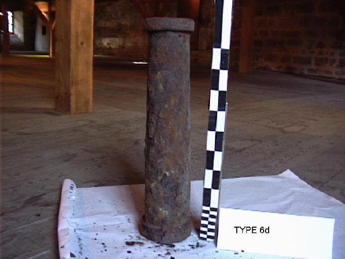Support de la poêle en sous-oeuvre. Les chandelles étaient disposées régulièrement sous la poêle. Les plus grandes étaient placées devant le foyer, là où le sol s'abaisse.