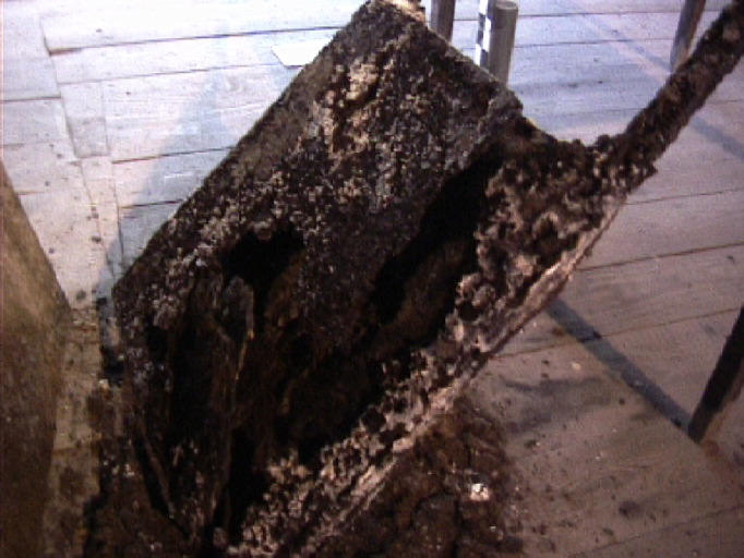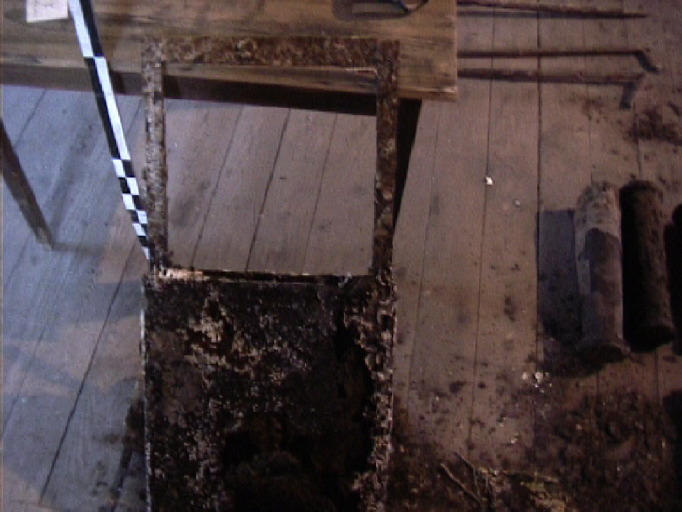 Châssis servant de vanne permettant la circulation des gaz de combustion dans le four de l'une des poêles. Accès d'un conduit aux cheminées ? ; chauffeur ? (utilisateur)