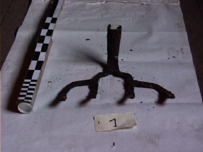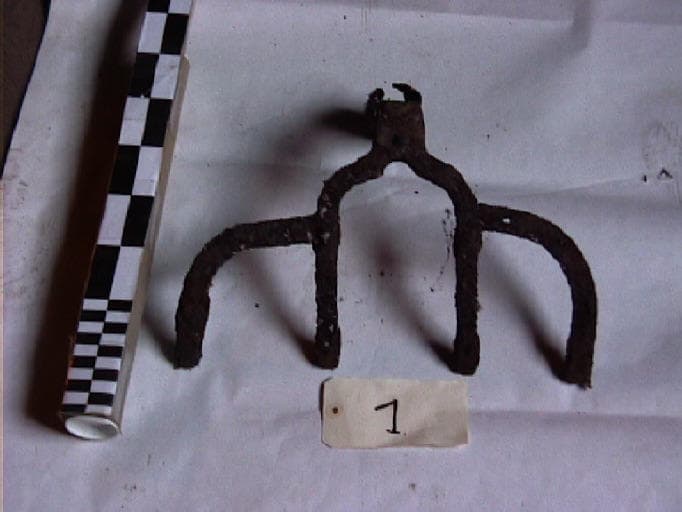 Permettait de ramener et de concentrer le sel cristallisé au bord de la poêle. Dans un second temps, le sel était extrait de la poêle à l'aide d'une pelle métallique percée, puis projeté sur l'égouttoir. Il n'y a que la tête du râble auquel il manque : la tôle perforée et le manche. ; Legouhy Raymond (utilisateur)