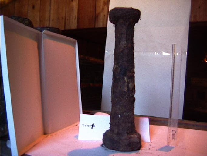 Support de la poêle en sous-oeuvre. Les chandelles étaient disposées régulièrement sous la poêle. Les plus grandes étaient placées devant le foyer, là où le sol s'abaisse.