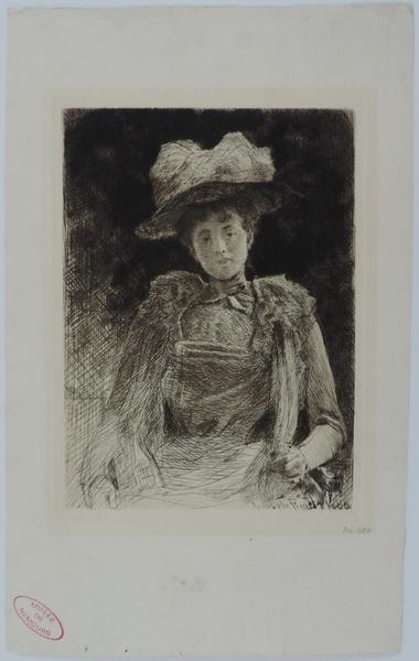 signé et daté, en bas à droite : Rodolphe Piquet 1900 ; numéro, en bas à droite, au crayon graphite : Inv. 1090 ; tampon, en bas à gauche : MUSEE / DE / NEMOURS ; au dos de la gravure : Ateliers J.C. SANSON 1910-1911 / Nemours & Paris, CARTON N-5 ; au dos de la gravure : Société des Amis du Vieux Château-Musée de Nemours numéroté 1090