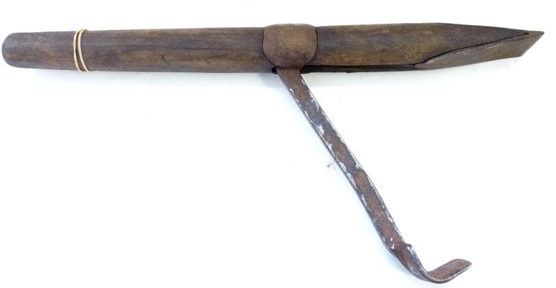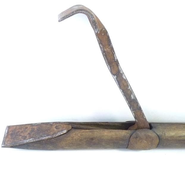 Outil de tonnelier utilisé pour permettre la mise en place des cercles d'extrémité et pour placer la dernière pièce de la fonçaille dans le tonneau