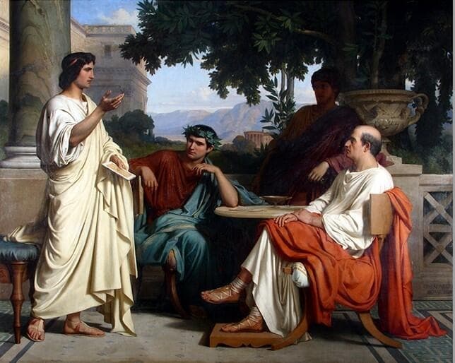 Horace, Virgile et Varius chez Mécène ; Virgile lit ses Géorgiques