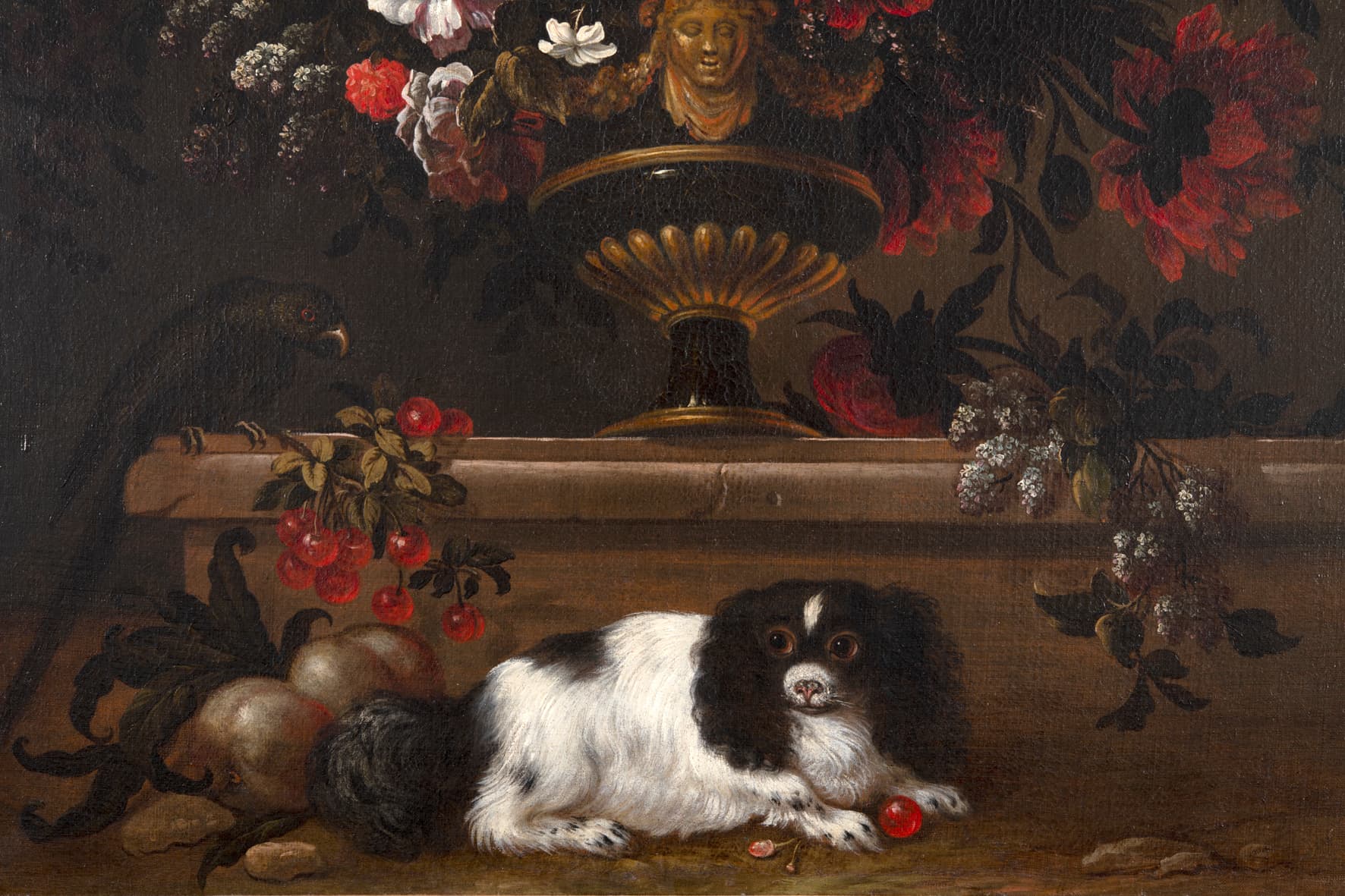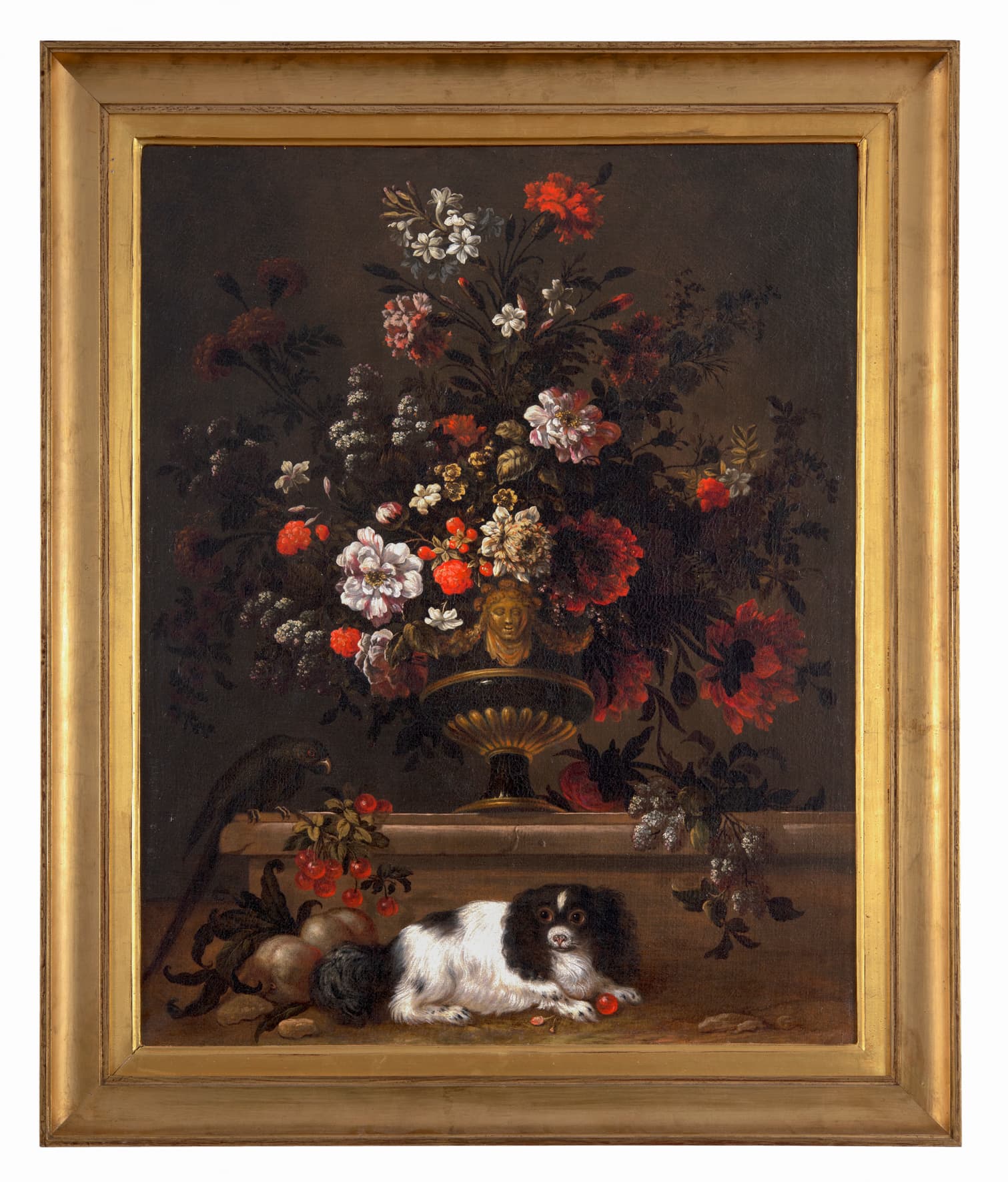 Vase de fleurs et chien