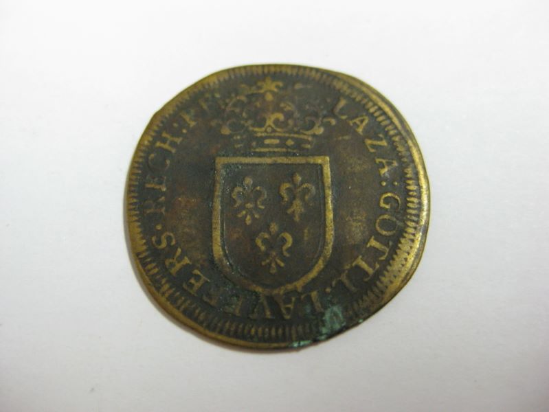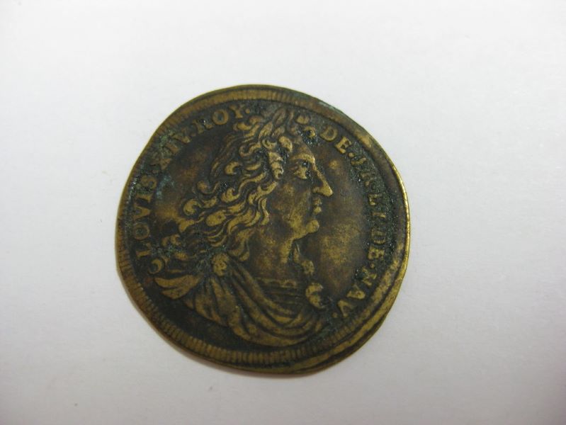 Avers : buste de Louis XIV à droite, lauré et drapé. Revers : écu de France surmonté d’une couronne royale.