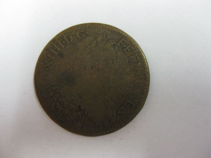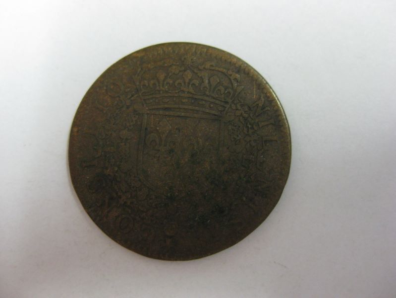 Avers : buste de Louis XIV jeune, à droite, lauré et vêtu de la peau de lion. Revers : écu de France surmonté de la couronne royale et entouré des deux colliers des ordres du roi.