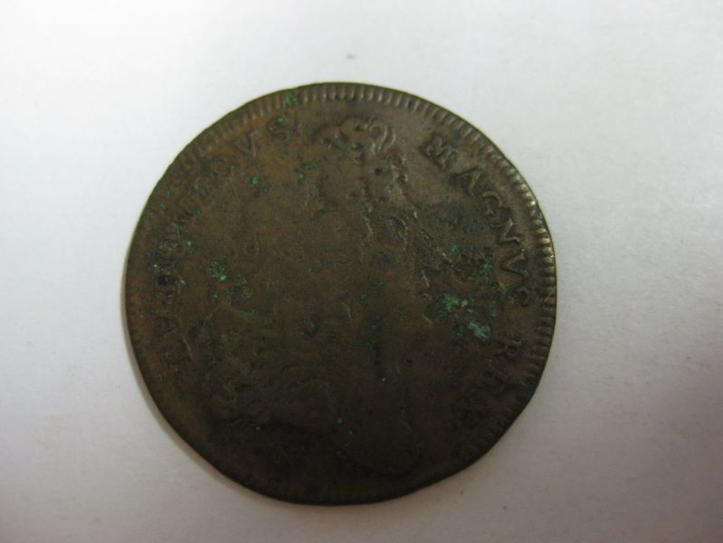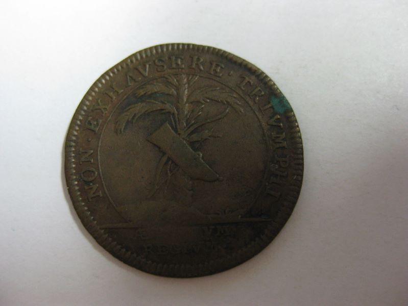 Avers : tête de Louis XIV, à droite ; sous la tranche du cou : N. Revers : un palmier au tronc duquel est accroché un carquois et un arc ; exergue : AERARIUM REGIUM.
