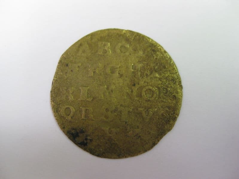 Avers : un maître de calcul à sa table de travail. Revers : un alphabet en cinq lignes.
