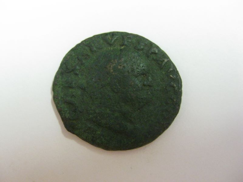 Avers : tête de Vespasien à droite, lauré. Revers quasi fruste : figure debout entre les lettres S C.