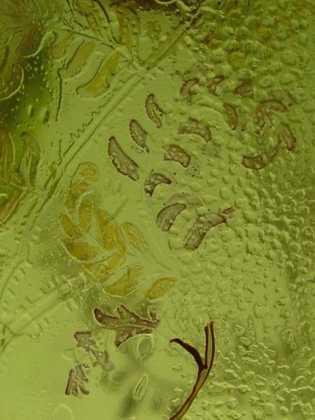 décor de fougères gravées en creux à lacide et en partie dorées, dorchidée tropicale du genre Paphiopedilum et de coprins en émaux polychromes opaques