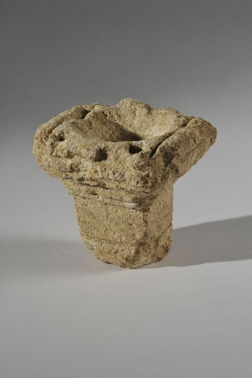 Petit réceptacle en pierre taillée découvert dans le frigidarium des bains de la villa de Damblain ayant pu servie de brûle parfum.