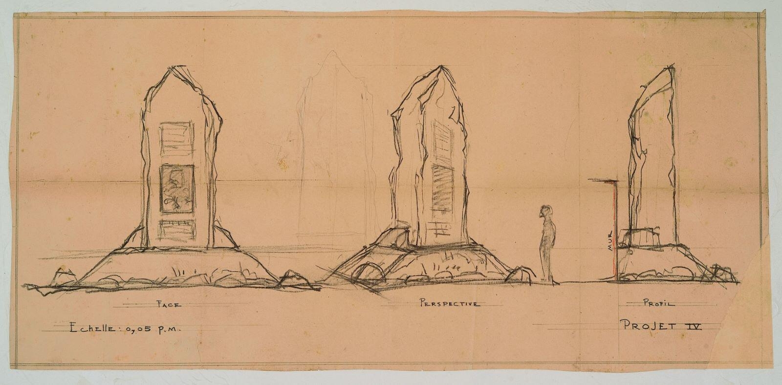 titre au recto en bas à droite au crayon : PROJET IV ; échelle au recto en bas à gauche au crayon : Echelle : 0,05 p.m. ; numéro d'inventaire au verso en bas à droite au graphite : 2008.6.38