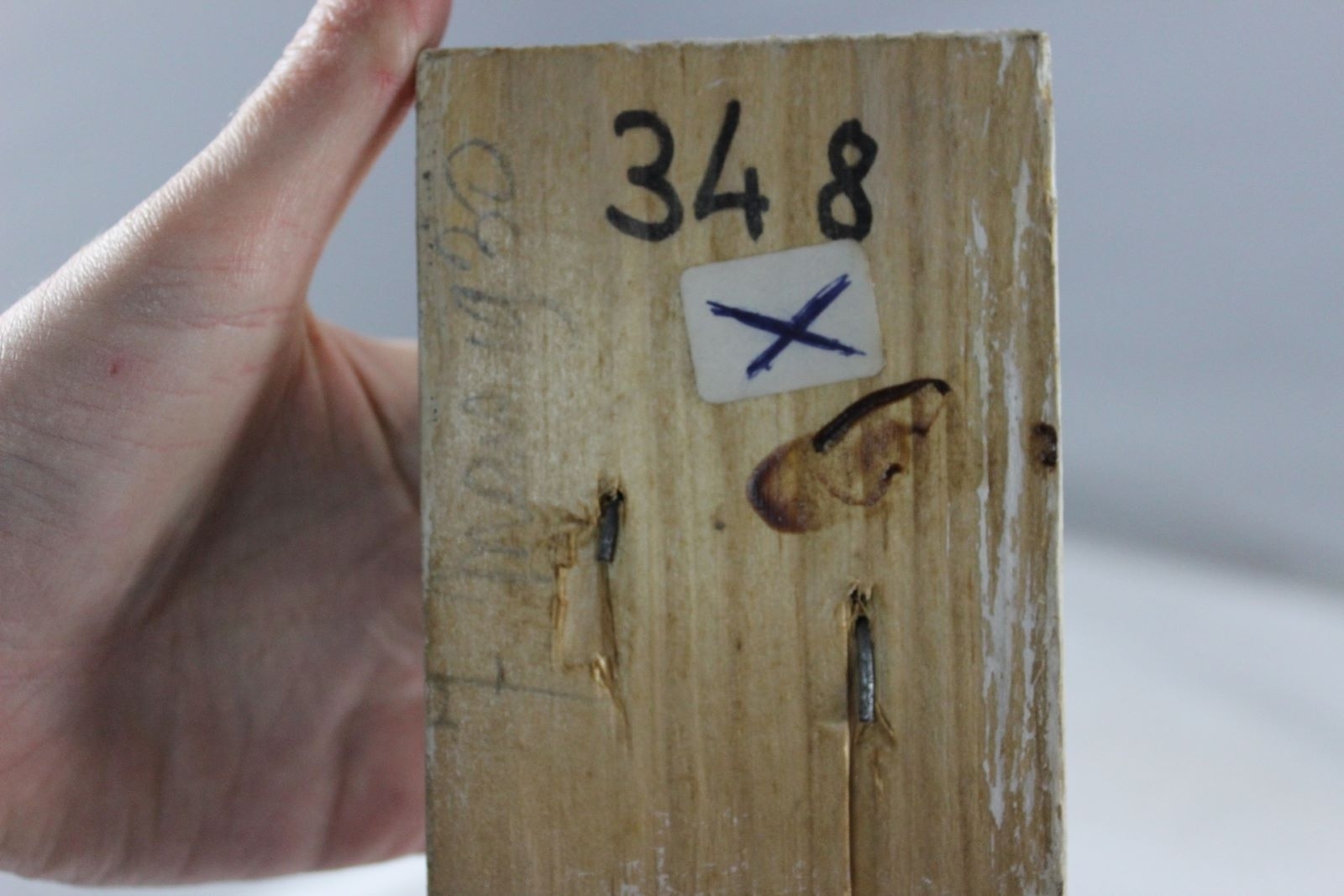 Sous socle au feutre : 348, au crayon gris : 7 mars 1930. Etiquette blanche rectangulaire avec une croix au stylo bleu