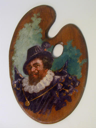 Le sujet est peint sur un panneau de bois ayant la forme d'une palette de peintre
