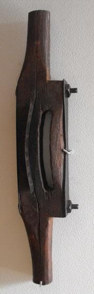 Le racloir est utilisé pour racler les douelles au niveau du bouge du fût. ; tonnelier (utilisateur)