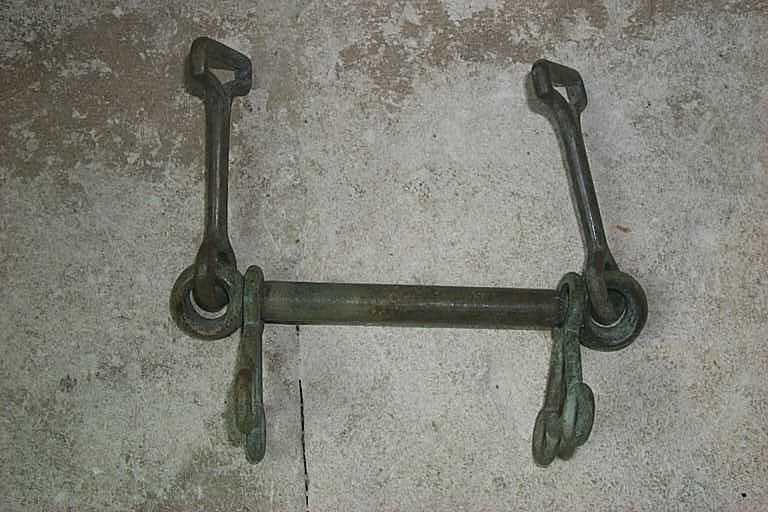 mors de filet à canon droit, avec ailettes triangulaires servant de montant bifurqué ; branche pour rênes