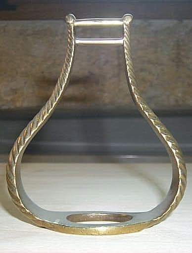 étrier en forme de lyre. Branches torsadées. Oeil rectangulaire. Semelle circulaire évidée