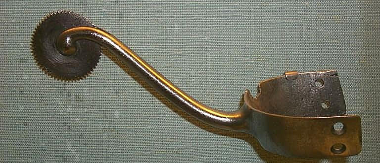 éperon à hautes branches légèrement incurvées et rivets. Tige en col de cygne. Molette circulaire dentée