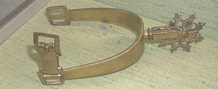 éperon en U à passants, une boucle ; tige droite à pans ; molette en rosace ajourée