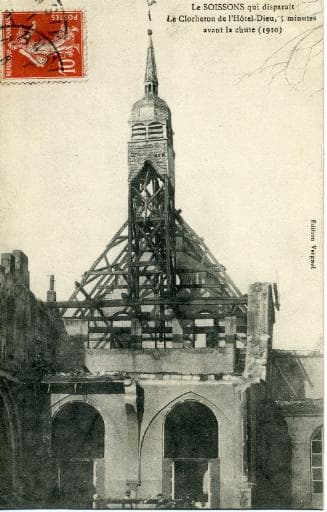 Le Soissons qui disparaît - Le clocheton de l'Hôtel-Dieu, 5 minutes avant la chute (1910)