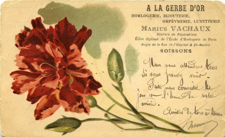POP | Plateforme ouverte du patrimoineA la gerbe d'or, horlogerie, bijouterie, orfèvrerie, lunetterie - Marius Vachaux Ateliers de réparations Elève diplômé de l'Ecole d'Horlogerie de Paris, Angle de la Rue de l'Hopital & St-Martin, Soissons