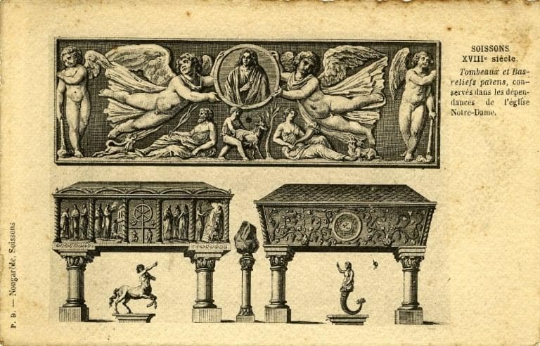 POP | Plateforme ouverte du patrimoineSoissons XVIIIe siècle - Tombeaux et Bas-reliefs païens conservés dans les dépendances de l'Eglise Notre-Dame