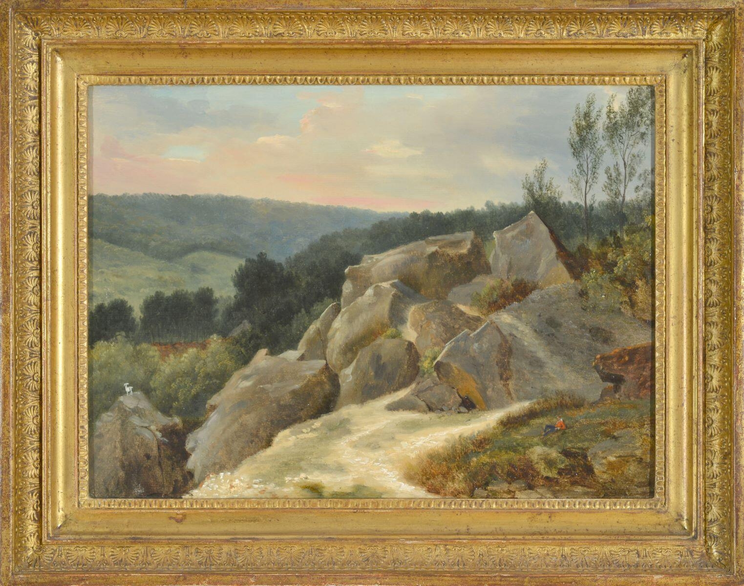 s. au dos du monogramme de l’artiste et mention : "Calvaire forêt de Fontainebleau 1825"
