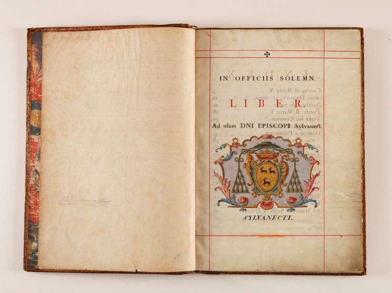 'Ce livre des offices solennels à l'usage de l'Évêque des Sylvanectes' a été identifié grâce aux armes figurant sur la couverture qui sont celles de François Trudaine, avant-dernier évêque de Senlis de 1714 à 1751.