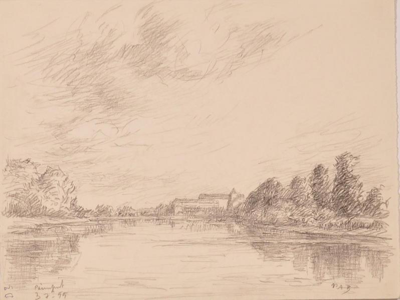 Paimpont, l'étang et des bâtiments (titre factice)