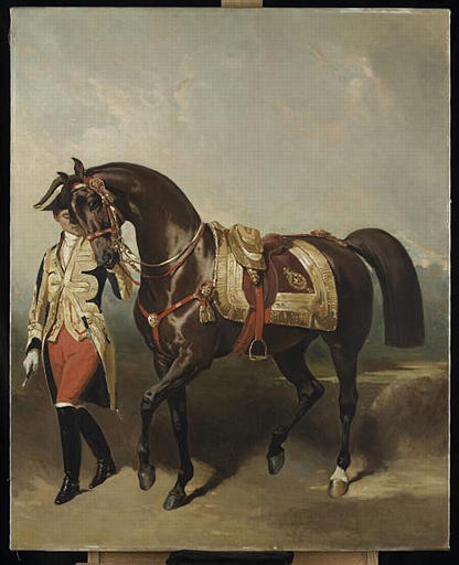 Arrêté du ministère d'Etat et de la Maison de l'Empereur, 23 août 1853 : 'acquisition d'un tableau représentant la jument de l'Empereur, commandé par Sa Majesté'. Prix : 1500 F ; Collection Ferrand donnée à la ville de Compiègne qui l'a déposée au musée national du château de Compiègne