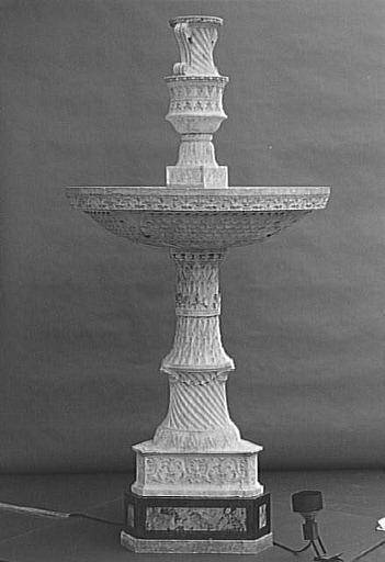Partie supérieure d'une fontaine, vasque et piédestal décorés des symboles héraldiques de Louis XII et d'Anne de Bretagne