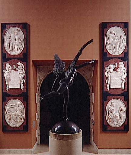 décor du monument du coeur de Louis XIII commandé en 1643 par la reine Anne d'Autriche (1601-1666), qui fut érigé dans une chapelle de l'église de Saint-Louis des Jésuites, à Paris, aujourd'hui Saint-Paul-Saint-Louis. Ce monument était situé près du maître-autel (côté évangile). Les éléments sont conservés au Louvre, pour les vertus cardinales : RF 608, RF 609, RF 610 ; pour l'épitaphe du roi Louis XIII : RF 3052 et pour la dédicace de la reine Anne d'Autriche : RF 3053