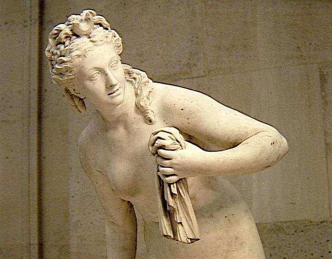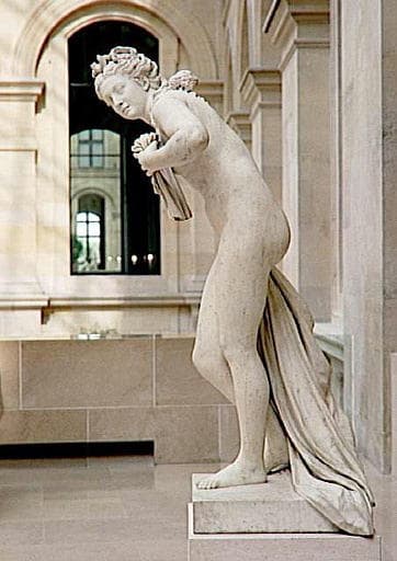 commandée en 1772 par la comtesse Du Barry (1743-1793) pour servir de pendant à la statue de Vénus d'Allegrain (conservée au Louvre MR 1747) ; payé le 12 septembre 1774 ; marbre au livret du Salon de 1777 (visible dans l'atelier du sculpteur) ; terminé et placé dans le parc du château de Louveciennes en 1778 ; réservé pour la Nation par Louis Simon Boizot le 26 décembre 1793 ; il existe de nombreuses réductions dont une au Louvre (ENT 1995.8, attribué à)