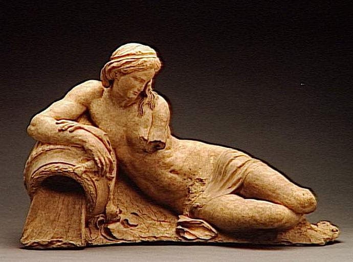 seconde maquette de la statue de la Marne faisant partie de la fontaine dite des Quatre-Saisons située au 57-59, rue de Grenelle à Paris, commandée en 1739 ; (modèle en plâtre au Salon de 1740, n°100) ; des dessins de cette fontaine sont conservés au Louvre