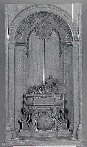 maquette de mausolée commandée le 9 février 1743 par Philibert Orry (1689-1747), directeur général des Bâtiments du roi, prévu en l'église Saint-Louis du Louvre, dont l'exécution fut finalement confiée à Lemoyne ; la seconde maquette est également conservée au Louvre (RF 1778)