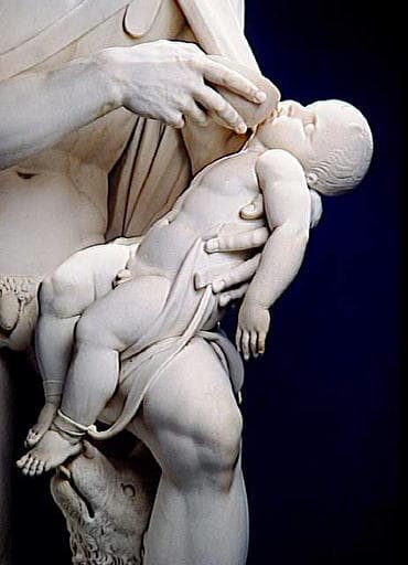 Oedipe enfant rappelé à la vie par le berger Phorbas qui l'a détaché de l'arbre