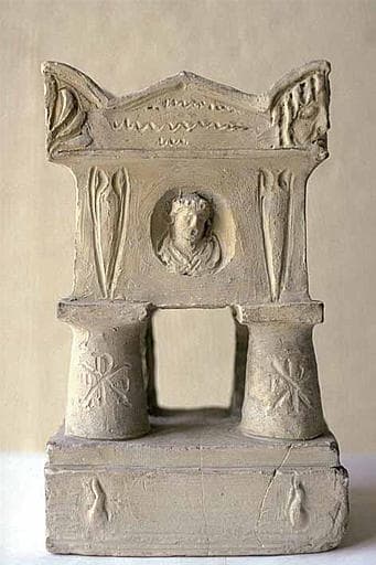 Sarcophage décoré de médaillons, de lacrymatoires et de chrismes (projet de tombeau)