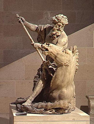 un des quatre groupes commandés en 1698, et également conservés au Louvre, par Jules Hardouin Mansart (1646-1708), surintendant des Bâtiments du roi, pour la Rivière du parc de Marly, avec La Seine (MR 1825), La Marne (RF 3007) et son pendant Amphitrite (RF 3005). Modèles exécutés en 1698-1699. Moulage des modèles en plâtre exécuté en 1699 sur les emplacements prévus pour les marbres. Exécution commencée une fois terminés le Mercure et La Renommée (MR 1822 et MR 1824) et exécutés en marbre de 1703 à 1708 (d'après l'inventaire des collections royales de 1707, exécutés en 1705). Parfait paiement, 18 avril 1712