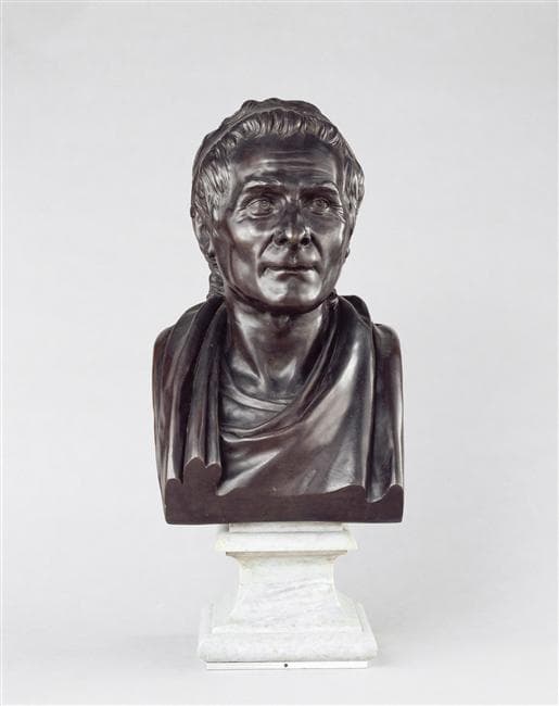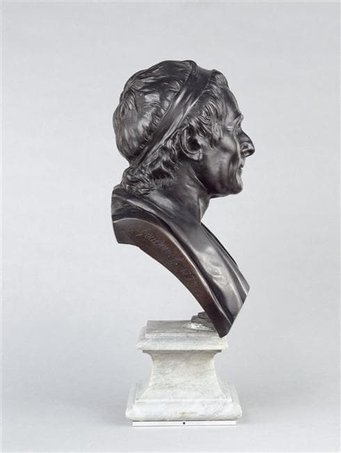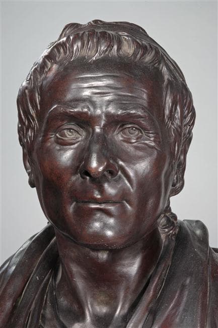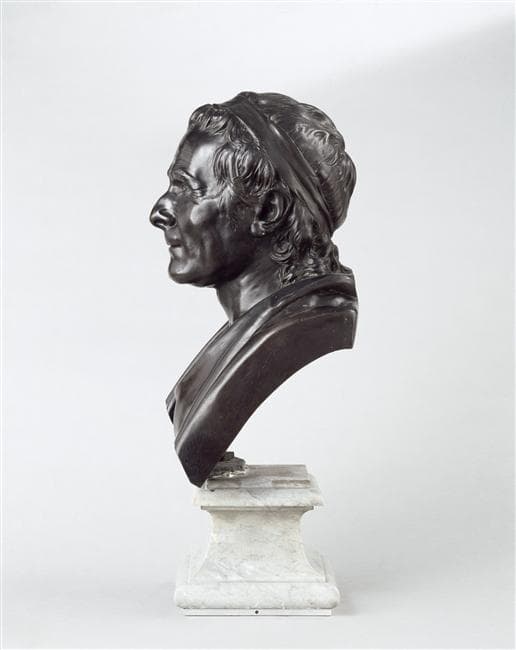 variante avec bandeau et draperie à l'antique d'un modèle exécuté d'après le masque mortuaire du défunt, ayant appartenu au marquis de Girardin et exposé au Salon de 1779, n°220, ce premier modèle est conservé au musée de l'abbaye de Chaalis ; un petit marbre figura au Salon de 1789, n°247 ; Houdon multiplia en outre les effigies en diverses matières et dimensions réparties en trois séries : à l'antique drapé à l'antique non drapé et en costume moderne, d'ailleurs, le Louvre conserve un buste de Rousseau appartenant à cette dernière série, en terre cuite : RF 2530