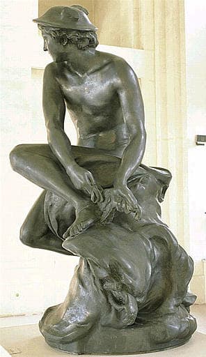 réplique du grand marbre commandé par Philibert Orry, directeur général des Bâtiments du roi, en 1742 (modèle à grandeur au Salon de 1747, n°57) ; marbre au Salon de 1748 donné avec une Vénus, son pendant, par Louis XV à Frédéric II de Prusse qui les place dans le parc du château de Sans-Souci en 1752 (actuellement à Berlin, musée Bode)