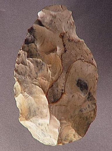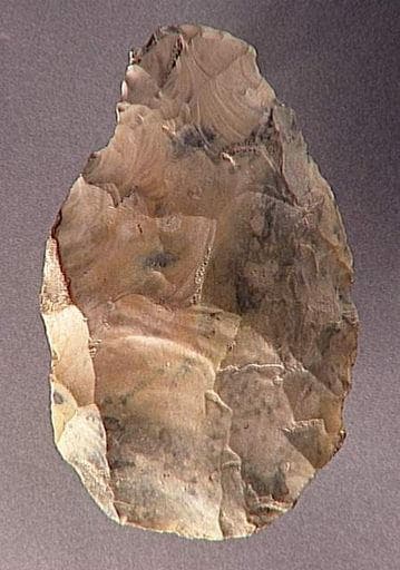 Outil bifacial, parmi les plus courants que les hommes du Paléolithique Moyen pouvaient utiliser. Le silex présente une retouche latérale