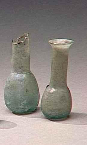 Balsamaire à panse piriforme et base plate. Le col est cylindrique. Variante de la forme Isings 28b.