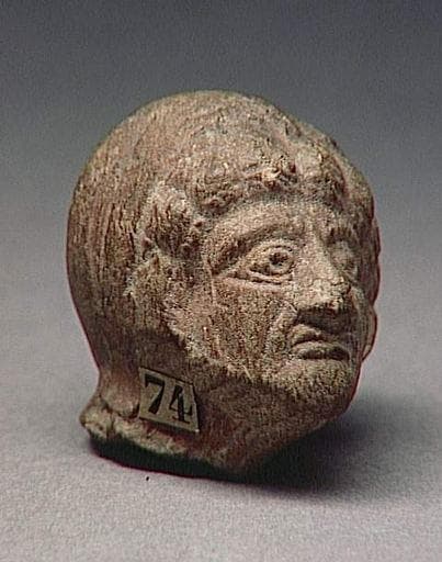 Provenance inconnue. Smyrne, une cité de Grèce de l'Est, produit en abondance ce type de figures, principalement à partir du IIème et du Ier siècle avant J.-C., jusqu'au IIème siècle. Les productions hellénistiques, comparables dans leur esprit général avec celle de Chantilly, sont cependant plus plastiques ; leur modelé est plus libre, moins graphique. Une tête de vieille femme du musée du Louvre (CA 5721) en fournit un bon exemple