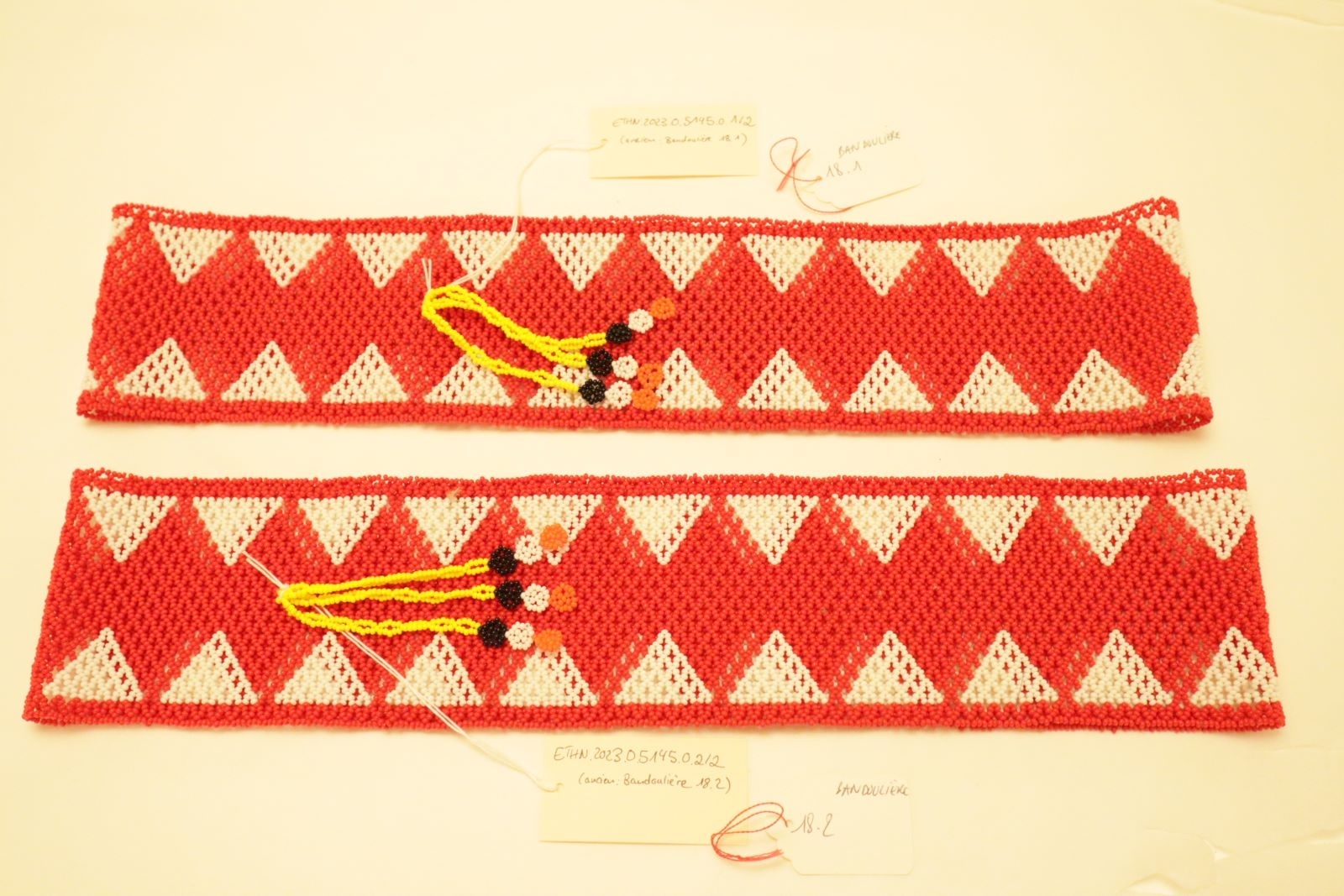 fabriquée par les femmes ; à destination des filles et garçons âgés de 15 à 25 ans ; portée en croix au niveau de la poitrine, lors de la cérémonie « imposition de nom » où le parent applique un duvet sur le corps de l’enfant ; pour jeune adulte (utilisateur)