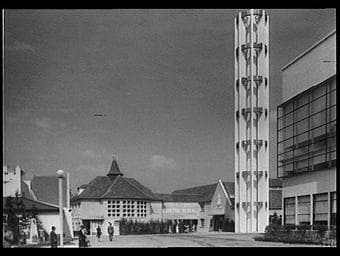 EXPOSITION INTERNATIONALE ; ARCHITECTURE AGRICOLE ; PLACE ; VUE GENERALE ; TOUR ; PER