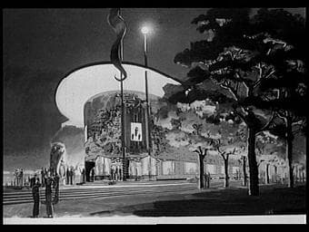 EXPOSITION INTERNATIONALE ; PROJET ; DESSIN ; PAVILLON D'EXPOSITION ; NUIT ; ENTREE