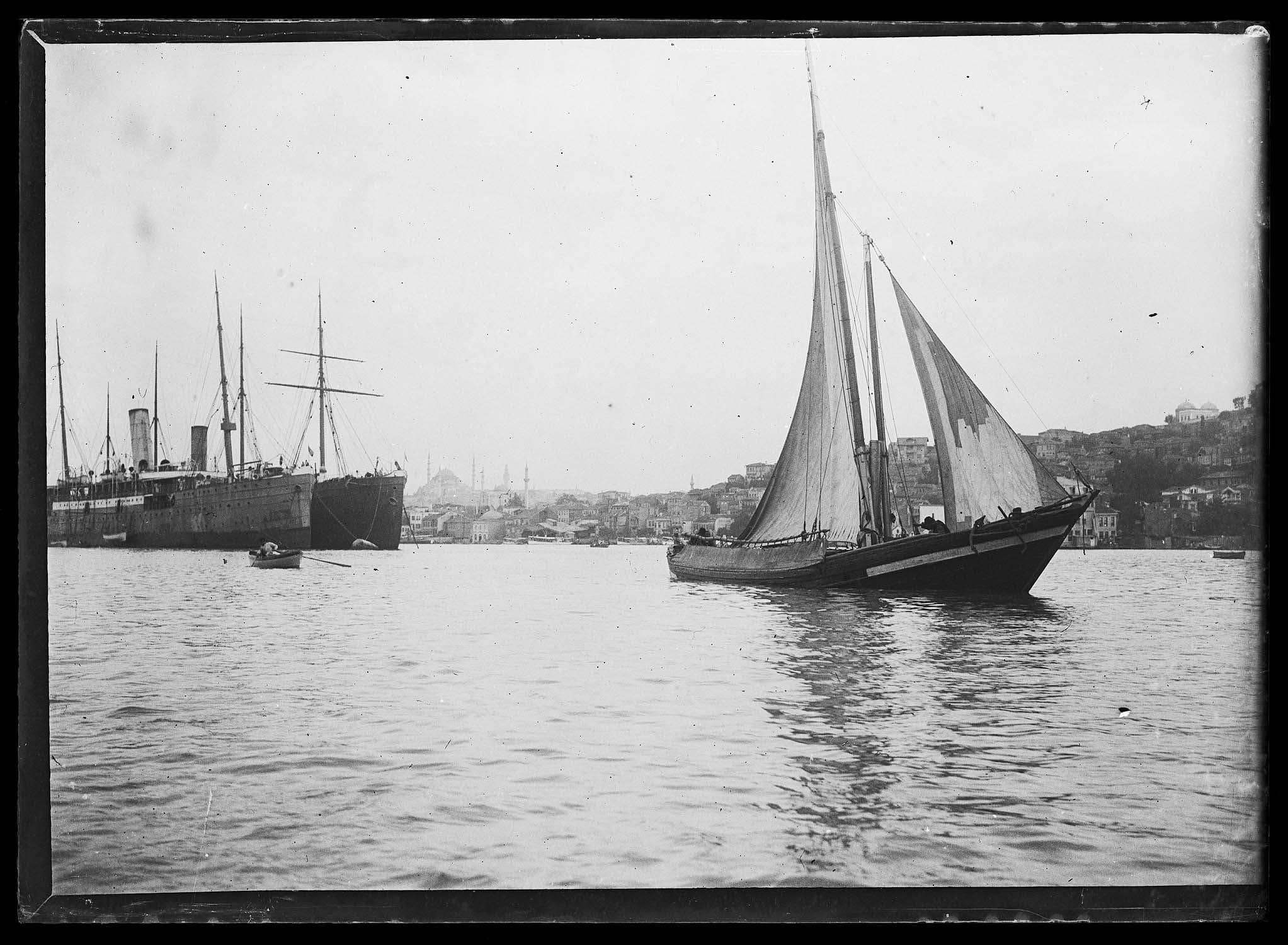 Vue d'ensemble, avec un voilier au premier plan