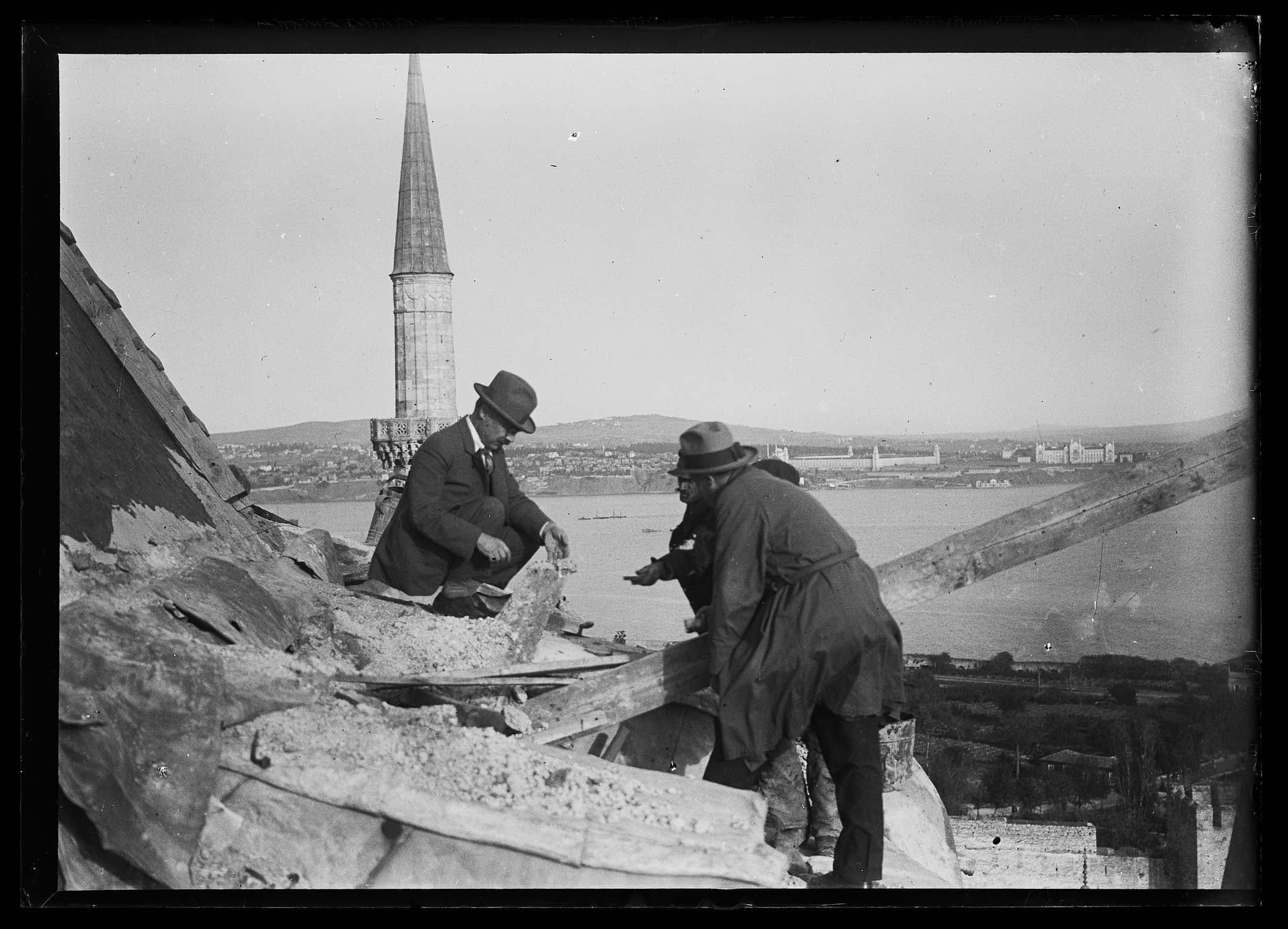 POP | Plateforme ouverte du patrimoineAlbert Gabriel (?) avec deux hommes sur la coupole